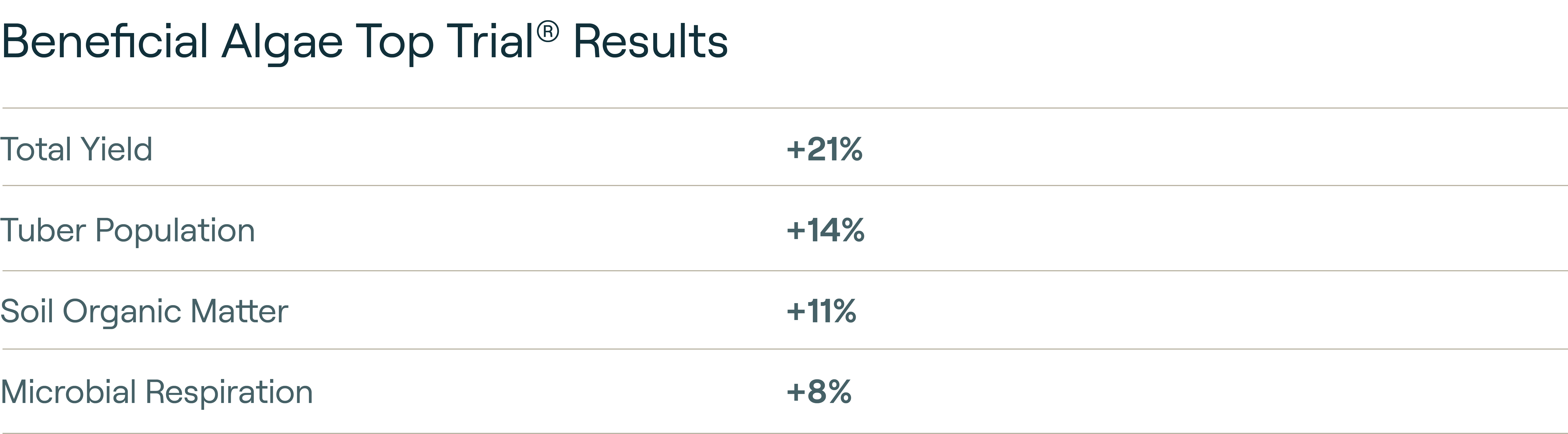 This season, we carried out a Top Trial® in Eastern Washington to understand how native beneficial algae could influence soil behavior and tuber development in irrigated potato production. The trial delivered clear evidence that biology-driven management can support more resilient soil systems and improve commercial yield.